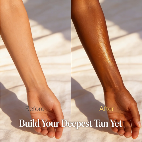 La fórmula funciona amplificando la absorción natural de UV de tu piel mientras proporciona una hidratación profunda. Al retener la humedad con aceites y mantecas naturales, asegura que tu bronceado se desarrolle de manera más intensa y dure significativamente más tiempo que broncearse solo con la piel desnuda, previniendo la decoloración o el pelado prematuros.